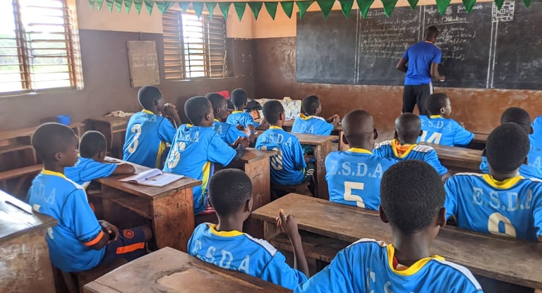 Première séance de formation pour les jeunes arbitres de football grâce au projet Jeunes Assistants Sportifs(JAS) initié par le Conseil d'Administration ESDA en collaboration avec le Comité Départemental des Arbitres de football du Mono.